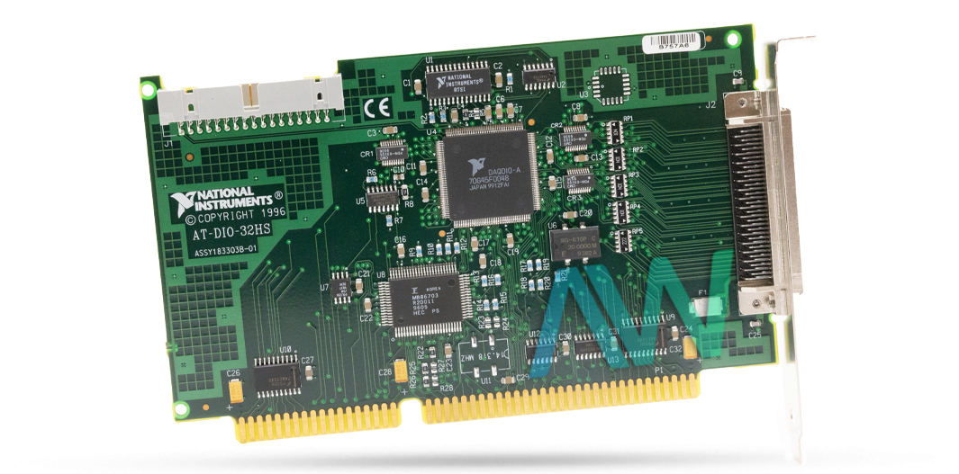 The AT-DIO-32HS (Part Number: 777313-01) is a parallel Digital I/O Board from the family of National Instruments NI-6533 devices. The AT-DIO-32HS is a high-speed digital input/output board with the capability to interface with PCI, PXI, and PCMCIA. The AT-DIO-32HS features 32 (5V TTL/CMOS) I/O lines divided into four 8-bit ports. The AT-DIO-32HS can communicate with National Instruments DAQ-DIO ASIC and offers dual DMA with an uninterrupted and high speed of data transfer up to 20 MHz (80 Megabytes/second).