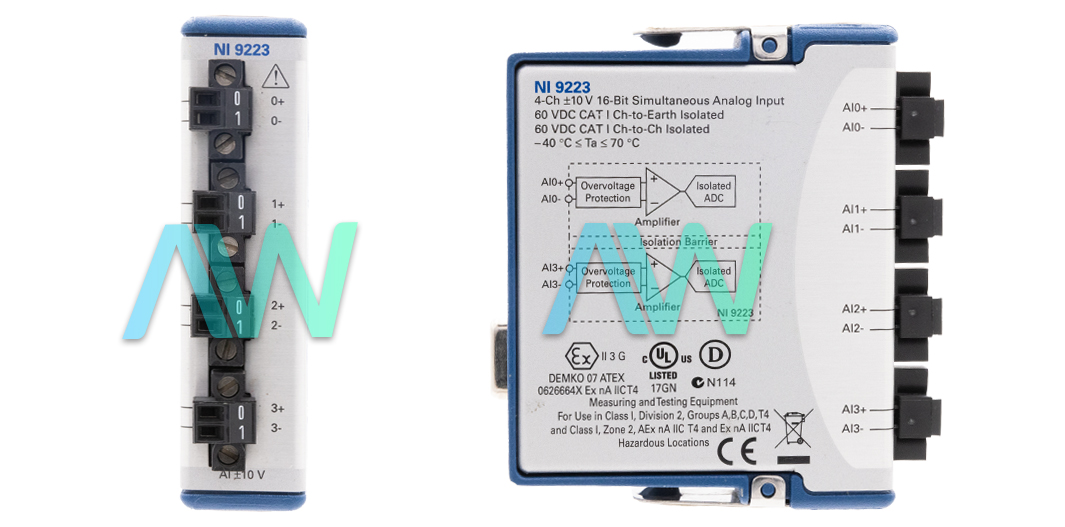 The NI 9223 module utilizes four 16-bit simple to-computerized converters (ACCs) for genuine concurrent testing at up to 1 MS/s per channel. The NI 9223 C Series Voltage Input Module utilizes four of the 2-position screw-terminal connectors. These modules incorporate every one of the four connectors. The user can arrange more as substitutes or for simple test hardware changes among gadgets under test.