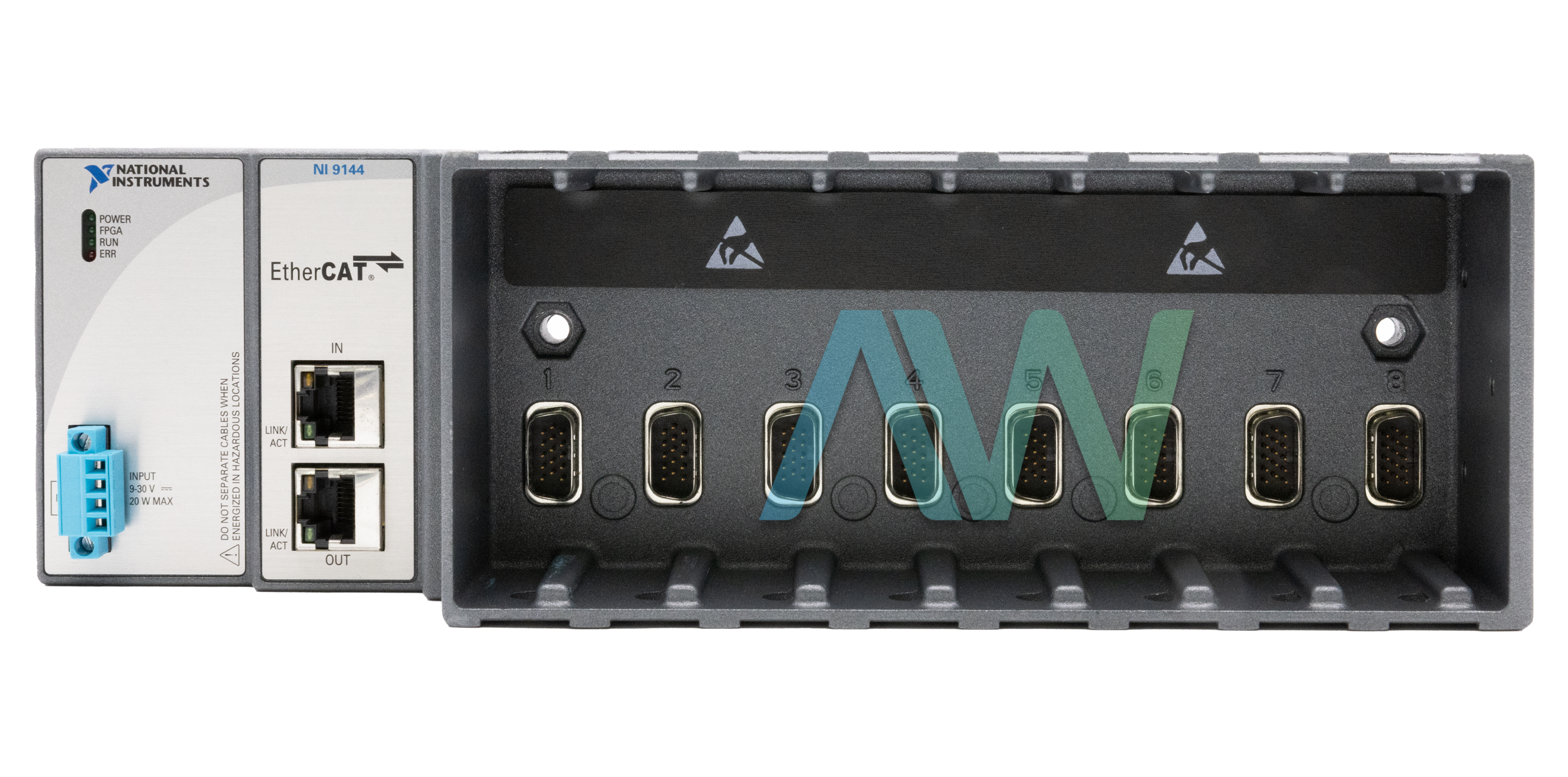 All I/O modules are automatically synchronized in each Chassis and are also synchronized with each other. By plugging in additional modules, the NI-9144 EtherCat Chassis becomes a versatile modular expansion system that can integrate multiple measurement types and channels when the user plugs in additional I/O modules. Individually, the modules contain inherent signal conditioning and isolation for industrial signal measurement types. Additionally, the device has 8 slots.