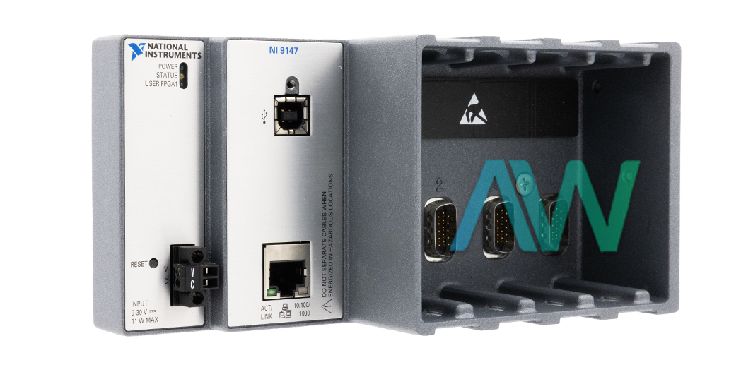 The NI-9147 (Part numbers: 783496-01 and 783496-02) is a rugged Ethernet CompactRIO Expansion Chassis for NI C Series modules. This model has a Zynq-7000 (XC7Z020) FPGA, 512 MB nonvolatile memory, 256 MB DRAM, and a 10Base-T, 100Base-T, 1000Base-T Ethernet network interface, with IEEE 802.3 compatibility. The Chassis speeds up the expansion of the user’s real-time system by using the onboard FPGA for inline processing and high-speed I/O and control. The NI-9147 CompactRIO Chassis can also be easily incorporated with other expansion chassis systems, PXI systems, and computers that run Windows OS.