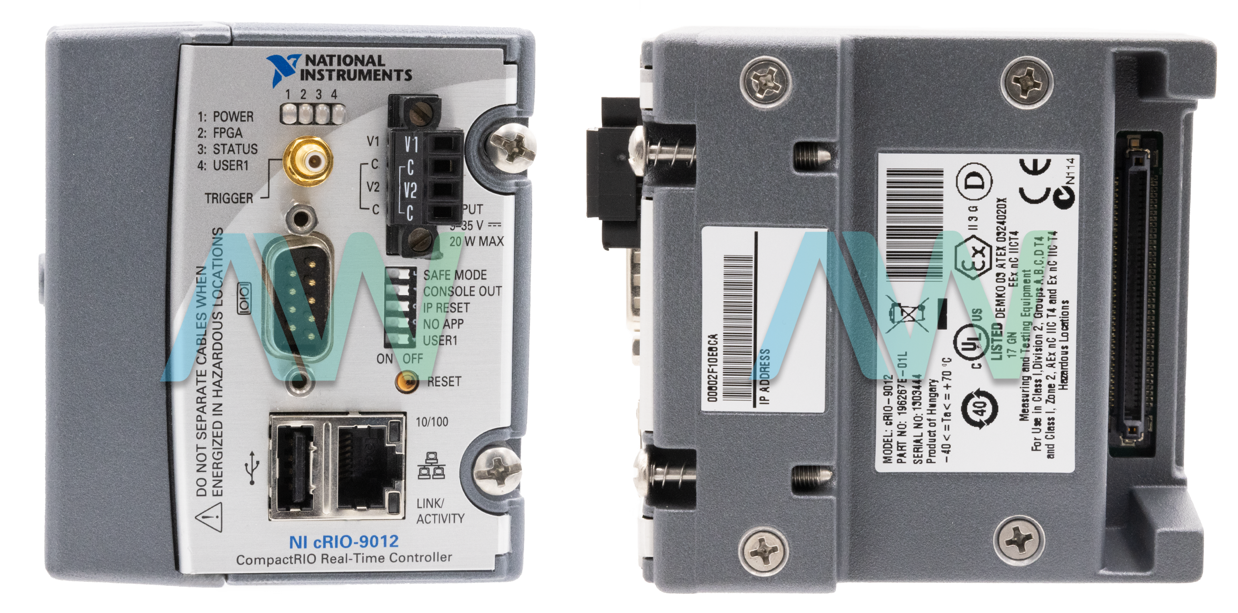 The cRIO-9012 (Part number: 779563-01) is a CompactRIO Controller by National Instruments. This Controller is viable for enhanced monitoring and control applications. This model has many ports, which includes one USB port and one Ethernet port. There is also one serial port available in this controller. The NI cRIO-9012 can be combined with a CompactRIO Chassis, which results in a system that can operate with C Series I/O modules. The cRIO 9012 is equipped with an industrial 400 MHz Free-scale MPC5200 processor.