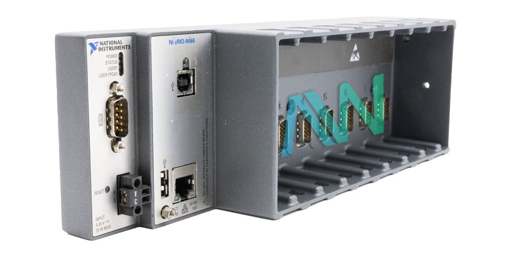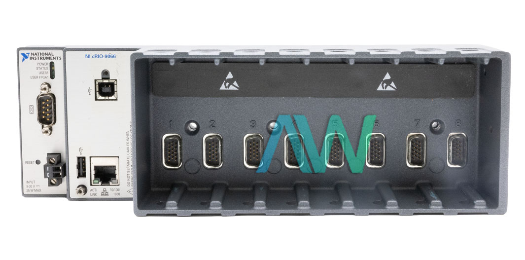 The National Instruments cRIO-9066 (Part Number: 783169-01) is a CompactRIO Controller with 667 Dual-Core Processor, 512 MB storage, and 256 MB DRAM, equipped with 8 slots. This embedded Controller is ideal for advanced monitoring and controlling applications. The NI cRIO-9066 comes equipped with a real-time processor (running the National Instruments Linux Real-Time OS, as well as an FPGA). This Controller comes equipped with one USB Device Port (USB 2.0 Hi-speed with a standard B connector, which transfers data at a maximum rate of 480Mbps), one RS-232 Serial Port, one USB Host Port (USB 2.0 Hi-speed with a standard A connector, which transfers data at a maximum rate of 480Mbps), and one RJ-45 Ethernet Port-It facilitates connection of the device to a Host computer/network by means of ethernet.