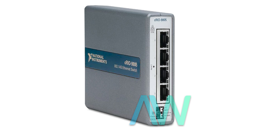 The cRIO-9805 (part number: 786993-01) is an Ethernet Expansion Module for CompactRIO from National Instruments. The module comes equipped with 4 internally switched ports and a PTP of IEEE 802.1AS. The power supply of the cRIO-9805 has a voltage of 9 V to 30 V, with a max power consumption of 5 W. The CompactRIO system from National Instruments employs additional ports that are capable of 802.1AS network synchronization to carry out a range of control and measurement operations for industrial control and automation systems.