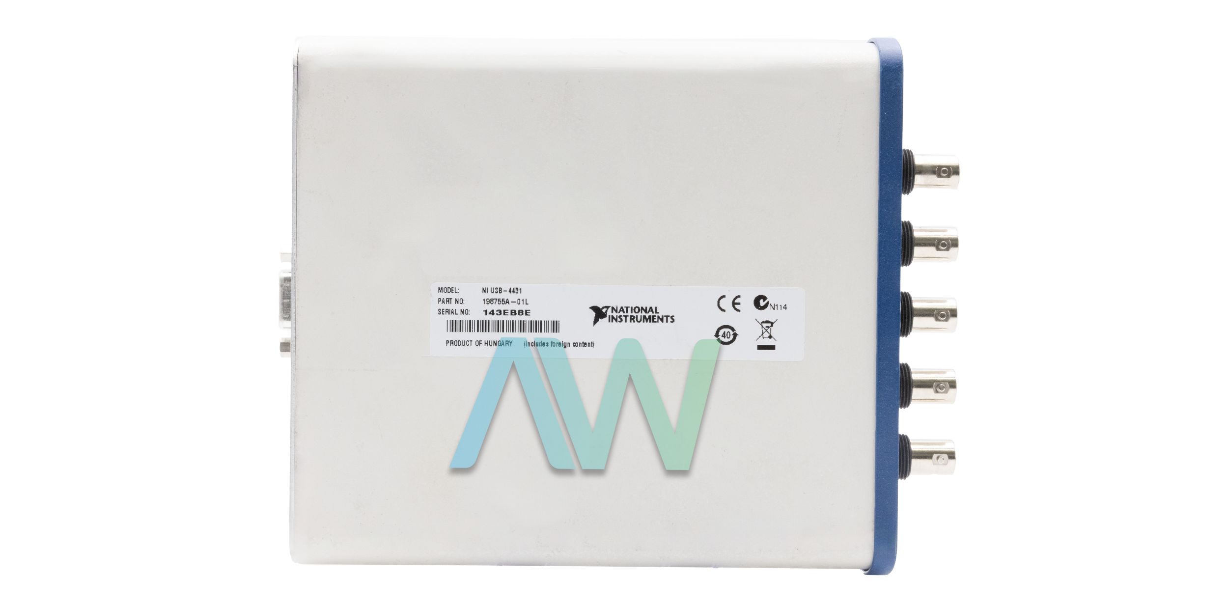 The USB-4431 (Part Number: 780164-01) from National Instruments is a dynamic Sound and Vibration Device that features 4 analog input channels and 1 analog output channel. By utilizing IEPE sensors, the NI USB-4431 delivers high accuracy measurements with an analog input dynamic range of 100 dB. The four pseudodifferential analog input channels of the device have a sample rate range that measures from 1 kS/s up to 102.4 kS/s simultaneously. With a maximum power consumption of 2.5 W, the USB-4431 sound and vibration device is an excellent choice for portable test applications- such as frequency response audio tests.