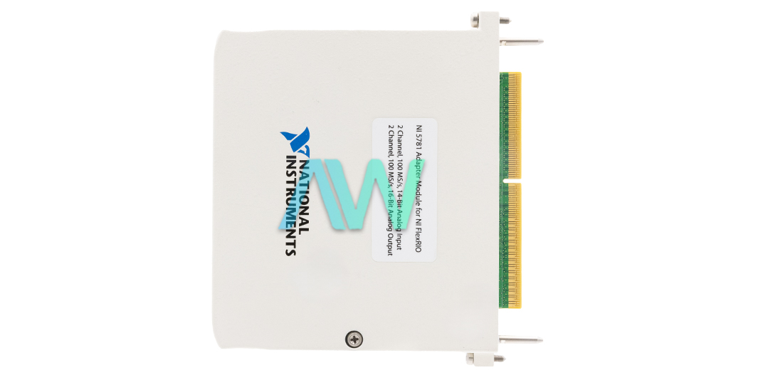 The National Instruments NI-5781 (Part Number: 781267-01) is a Transceiver Adapter Module for FlexRIO systems. This 40 MHz Bandwidth device is an analog, dual-input, and dual-output module designed to interface with baseband to RF up-converters and down-converters. The maximum analog input sampling and analog output update rate achievable with this device is 100 MS/s. When the user couples the NI-5781 with a compatible PXI FPGA Module, the resulting system is a reconfigurable I/O baseband. This system can be used for the implementation of custom RF modulation, custom RF demodulation, bit error rate testing, channel emulation, or spectral monitoring or jamming.