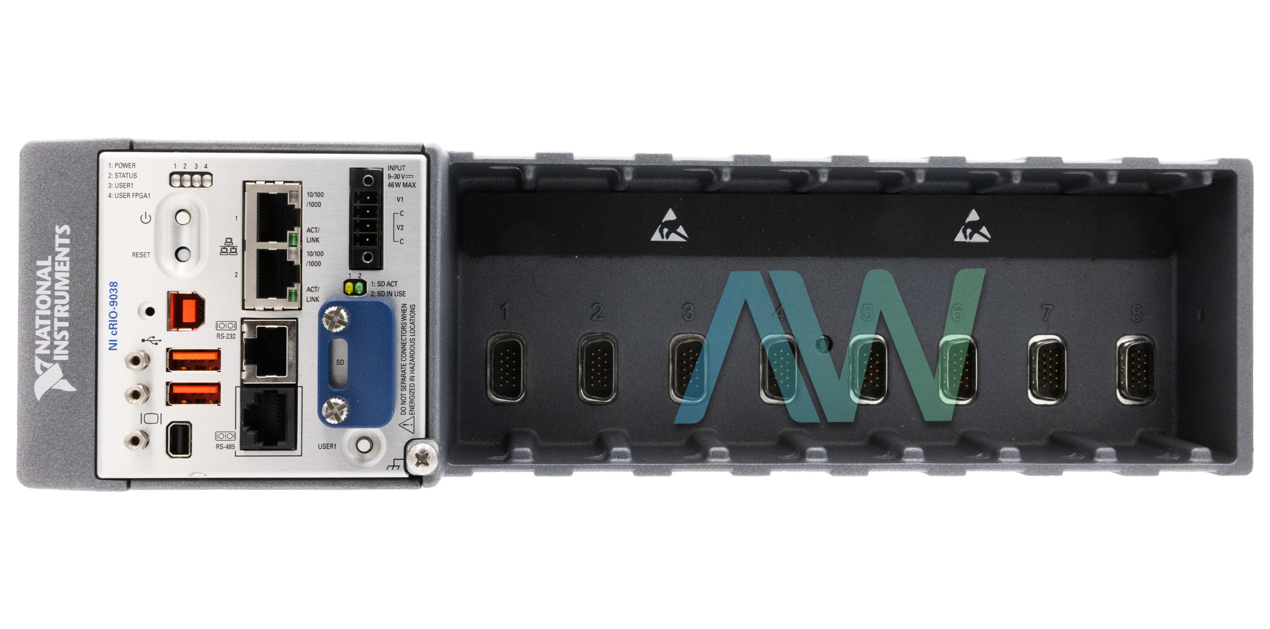 The cRIO‑9038 (Part numbers: 783850-01 and 783850-02) is an embedded Controller manufactured by National Instruments. It is equipped with a Xilinx Kintex-7 160T FPGA. The CompactRIO Controller is featured with 2 GB of DDR3 memory and an 8 GB nonvolatile hard drive. It operates on the Intel Atom E3825 CPU which has a 1.33 GHz dual core processor. The cRIO-9038 consists of 8 slots for C Series I/O modules and is preferred for complex machine control applications. The NI cRIO‑9038 has a combination of advanced performance and capabilities. These features enable the model to merge many common tasks in a single Controller. Consequently, it offers excellent development time with complexity and decreases the system cost. The difference between the two aforementioned cRIO‑9038 part numbers is that part number 783850-02 is conformal coated, while part number 783850-01 is not.