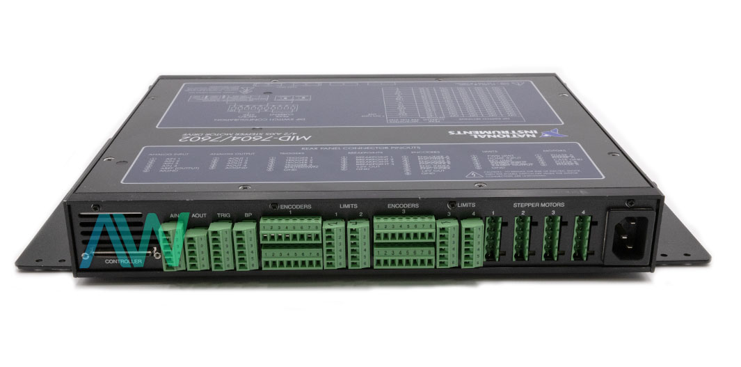 Designed to offer easy-to-connect 2-axis drive solutions, the National Instruments NI MID-7602 (Part Numbers: 778003-01 and 778003-05) is an integrated stepper type motor power drive. This model offers stepper motor control from the National Instruments NI-7340, NI-7330, and NI-7350 controllers.
