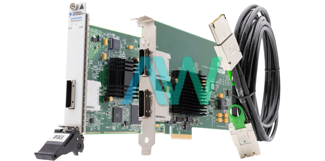 The NI PXIe-PCIe8372 (Part Number: 779722-03) has a sustained throughput of 832 MB/s, which is the highest throughput in the MXI-Express x4 Series. This MXI-Express Kit is comprised of a PCIe-8372 board in the user’s PC attached with a x4 MXI-Express cable to a PXIe-8370 module in slot 1 of a PXI Express chassis. The advantage of using the PCIe-8372 is that it offers two cabled PCI Express links, unlike the PCIe-8371 which only offers one link. The result of implementing the PCIe-8372 into a PC is that each link can be utilized to cable to a separate PXIe-8370 module in a different PXI Express chassis. Then, the user can control two PXI Express systems at the same time. Another advantage of this National Instruments MXI-Express Kit is that it does not involve any type of programming.