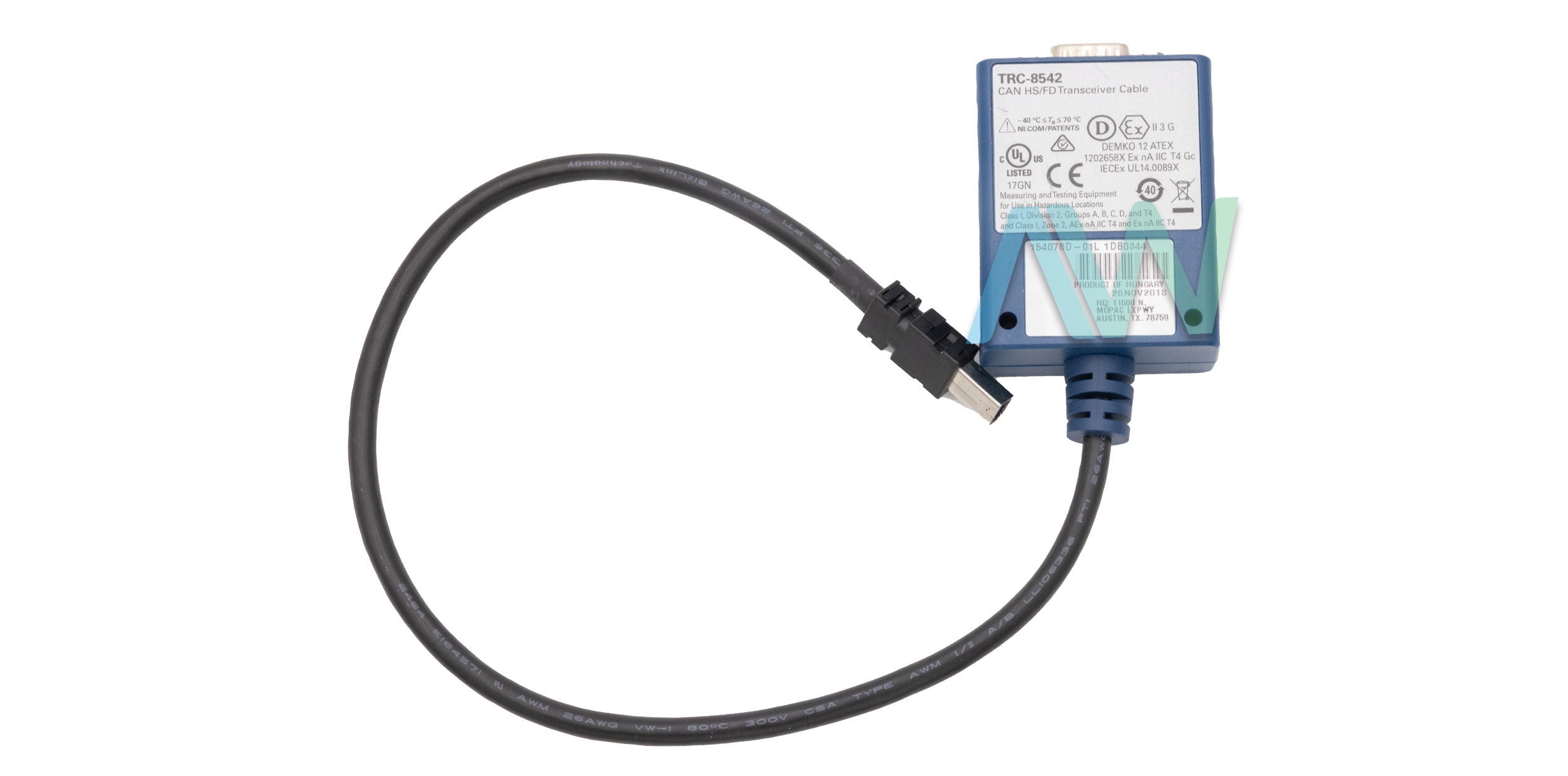 The part number 783699-02 from National Instruments is the identifying part number for the TRC-8542 Transceiver Cable. This cable is a high-performance solution engineered especially for the CAN (Controller Area Network) communication system. This 783699-02 cable is equipped with NXP TJA1463 and TJA1043T transceiver. For the NXP TJA1463 transceiver, its certified maximum baud rate is 8 Mb per second with an input voltage limit of -27 V DC to +40 V DC and an output voltage limit of 5 V DC. While for the NXP TJA1043T transceiver, its maximum baud rate is 5 Mb per second with an input voltage range of -27 V DC to +40 V DC and an output voltage limit of 5 V DC. Additionally, the cable provides a Port-to-COM maximum voltage of -27 V DC to +40 V DC and a port-to-earth ground isolation voltage of 60 V DC continuous.