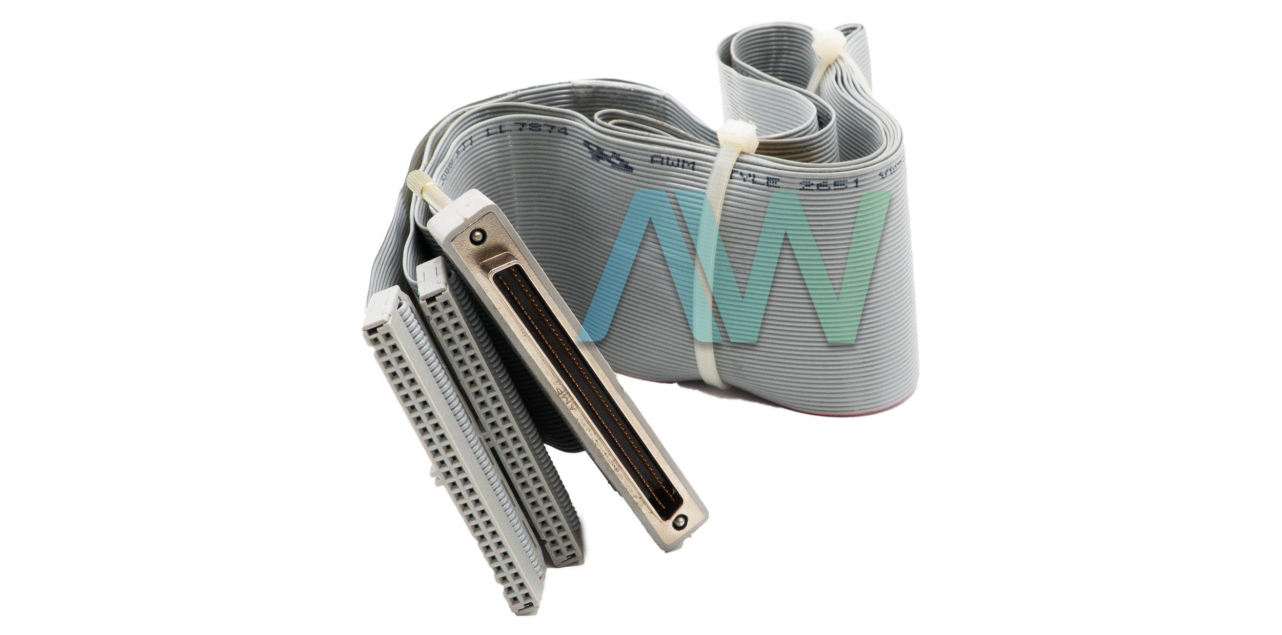 The R1005050 (Part Numbers: 182762-0R5, 182762-01, and 182762-02) is a low-cost, unshielded ribbon cable from National Instruments. This cable has a length of 1 meter and is widely used with 100-pin National Instruments hardware, such as the NI-6527 or NI-6508. The National Instruments R1005050 is a “Y” type cable, which means it is an assembly of three connectors and two 50-pin cables. Both 50-pin cables terminate in a 100-pin single connector on one end. On the free ends, the cable has individual 50-pin connectors.