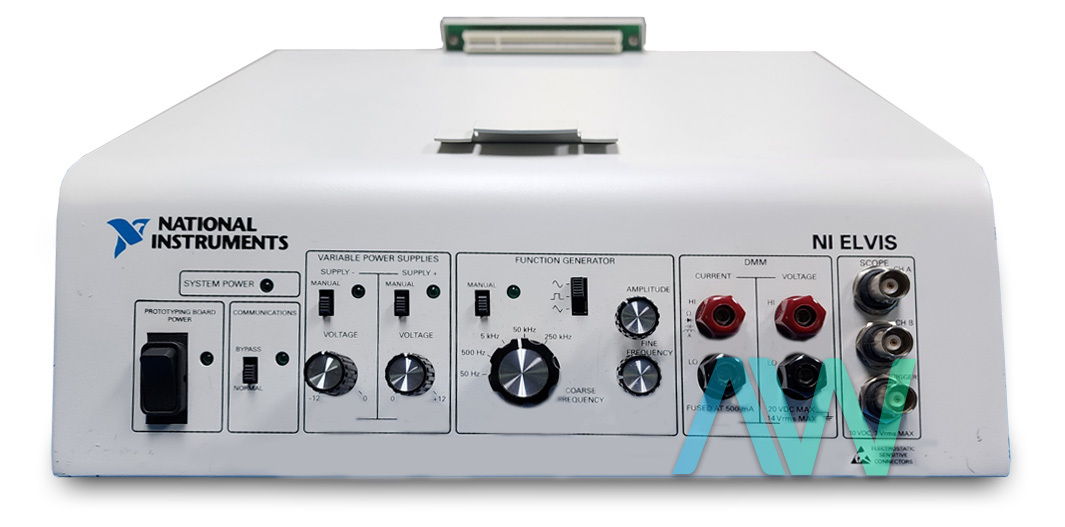 The NI ELVIS (Part Numbers: 778606-02, 778748-02, 777448-63, 778606-03, 189323D-01) by National Instruments is an educational laboratory suite intended for academic use. The NI ELVIS consists of a multi-purpose platform for gathering and controlling data. This enables users to conduct experiments, analyze data, and create and test designs in a virtual setting. Along with capabilities for data analysis and visualization, the supplementary software of the NI ELVIS offers a GUI for setting and interfacing with the hardware. The NI ELVIS comes with DC power supplies of multiple voltages; either +15 V, -15 V, or +5 V. It also features Digital I/O channels that have 8 bits of resolution.