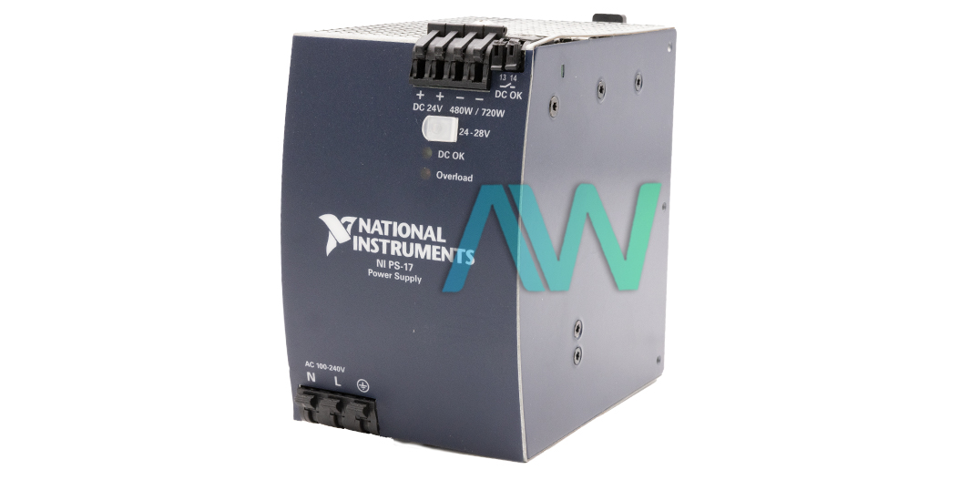 Rated to provide 480 Watts of output power, 20 Amperes output current, and 24 V to 28 VDC output voltage, the NI PS-17 (Part Number: 781095-01) is an Industrial Power Supply. This Power Supply can be used to power a variety of devices and instruments. The NI PS-17 can be operated over an input voltage range of 110 to 150 VDC and 85 to 276 VAC. For dynamic loads, this model can provide up to 150% of peak load capability and PFC (active power factor correction).