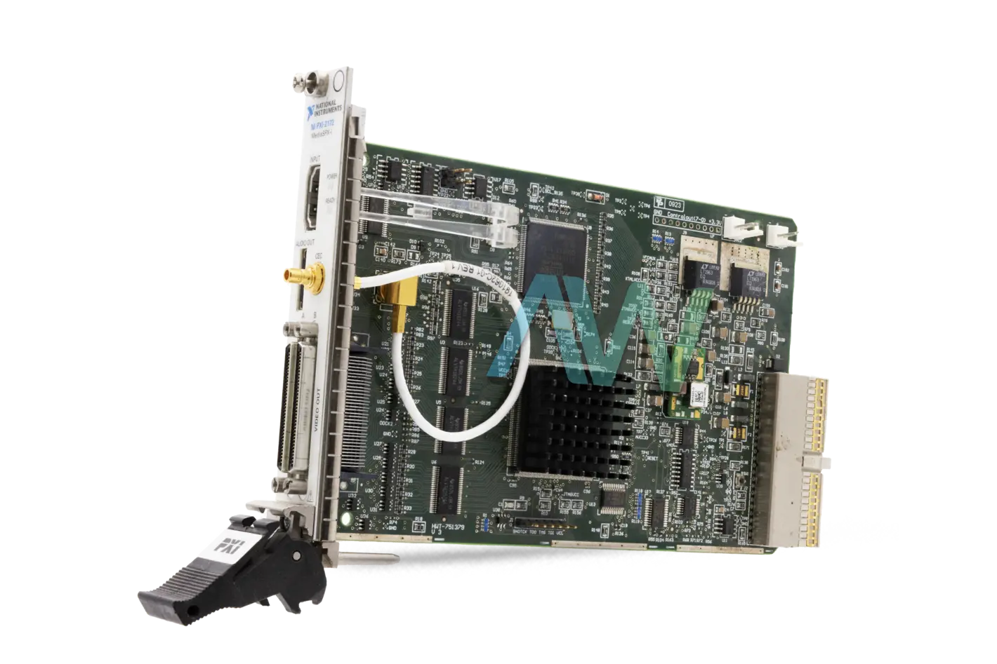 Designed for PXI chassis, the National Instruments NI PXI-2172 is a Digital Video Analyzer. This Analyzer enables the NI VMS test system to receive HDMI grade digital video signals and to perform their analysis. The NI PXI-2172 serves as an interface between digital I/O modules and an HDMI source. This module comes equipped with a 19-pin HDMI connector. For video, it has two 68-pin digital interface VHDCI connectors, one small-geometry connector for audio, and a CEC output as well.