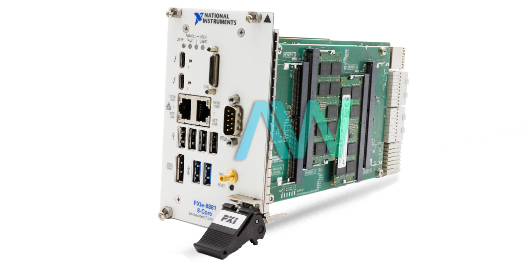 The part number 787807-01 from National Instruments is the identifying part number for the PXIe-8881 PXI Express Control Module. This instrument comes in different Intel Xeon W CPU configurations ranging from 2225, 2245 and 2295 processors. These processors offer up to 18 cores with a frequency of 3 GHz up to 4.6 GHz for turbo frequencies. This controller features 4 channel DDR4-2666 memory ranging from 16 GB up to 64 GB.