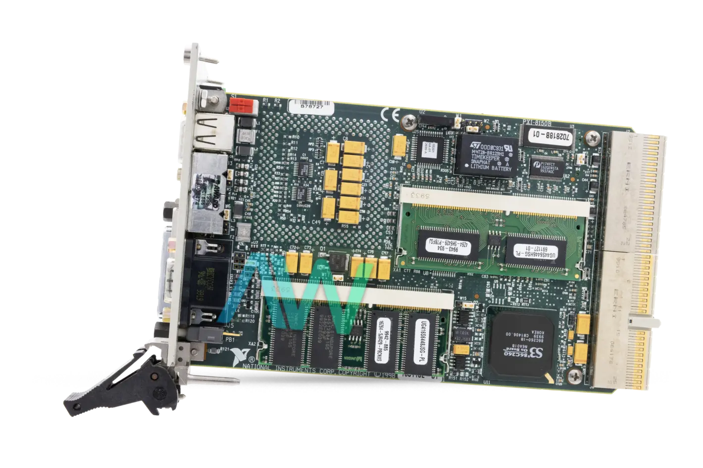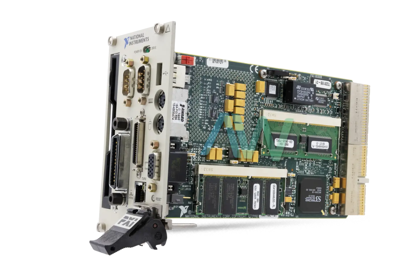 In addition, the NI PXI-8156B has 1 GPIB (IEEE 488.2) port, 1 Ultra DMA IDE hard drive, 1 Ethernet Port, 1 USB port, 1 1.44 MB floppy drive, 1 IEEE 1284 ECP/EPP parallel port, 2 serial ports, and standard PS/2 connectors for a keyboard and mouse. In addition, the National Instruments PXI-8156B is equipped with 2 MB DRAM. However, 32 MB, 64 MB, or 128 MB RAM can be added to the controller. NI RAM is guaranteed to work with the controller, so take caution when purchasing other brands. When plugged into the system controller slot of a PXI chassis, the PXI 8156B expands to the left, preserving all other active PXI slots for instrument modules. The device can be programmed using application development environments such as LabVIEW or LabWindows/CVI.