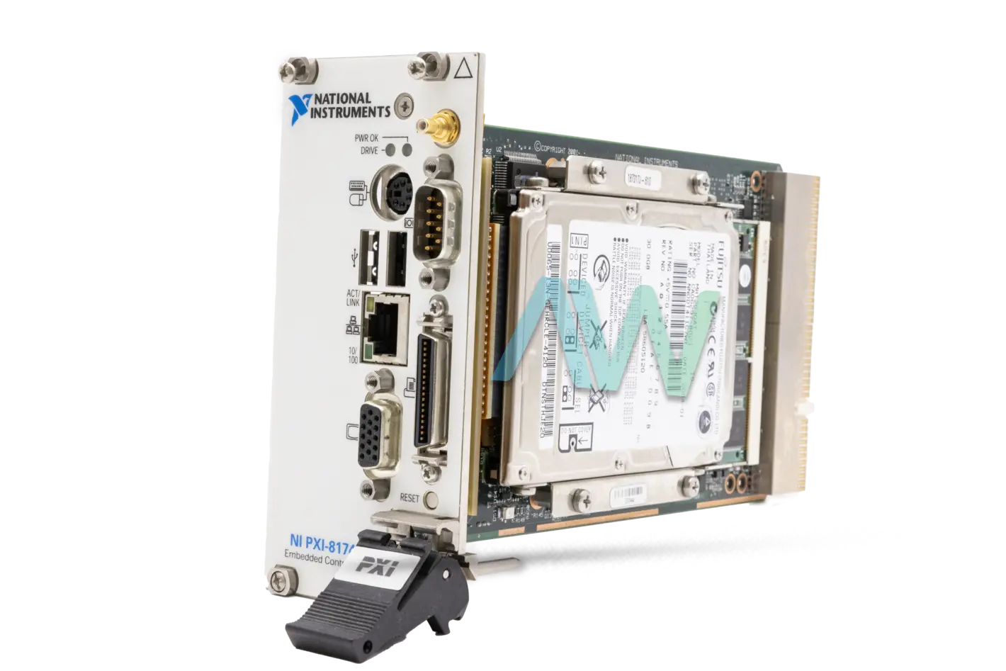 The National Instruments PXI-8174 is a Windows-based, Pentium PXI/cPCI compatible system Controller. This Controller, along with a PXI-compatible chassis like the PXI-1000B, results in a comprehensive, PC-compatible computer packaged in a rugged, compact package. Power by a 566 MHz processor, the NI PXI 8174 comes equipped with all the standard I/O including: a 15-pin DSUB (standard VGA), a COM1 RS-232 Serial Port (9-pin DSUB), a 10/100 Ethernet Port, a Parallel Port (IEEE 1284), two 4-pin Series A receptacle USB Ports, and a PS/2 port.