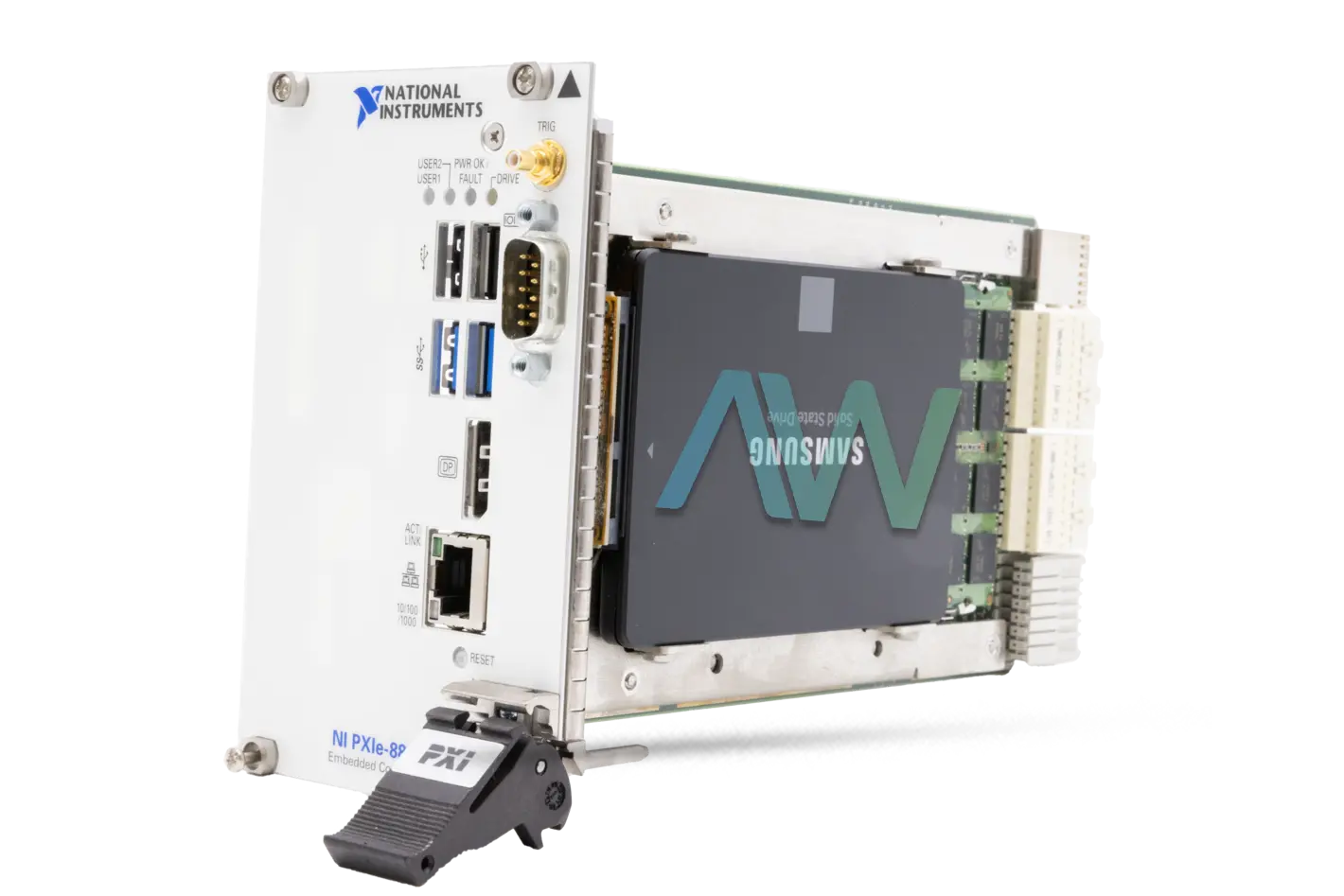 The PXIe-8821 (Part Numbers: 785158-04, 785545-01, 785158-33, 142292C-311L) is a Dual-Core, 2.6 GHz PXI Controller. This Controller supports development in LabVIEW, making it easy to integrate a variety of I/O within the user’s application. It is possible to build a custom real-time system by using the NI PXIe-8821 with a mix of PXI Express and CompactPCI Express modules. With LabVIEW libraries, users can create applications involving data acquisition, dynamic signal acquisition, motion control, image acquisition, reconfigurable I/O, and instrumentation. With this model, users can communicate with peripheral devices via Ethernet or serial protocols. CAN and GPIB support can be added through additional PXI modules. In addition, users can utilize NI-VISA software to incorporate outsider PXI/CompactPCI modules into an application.