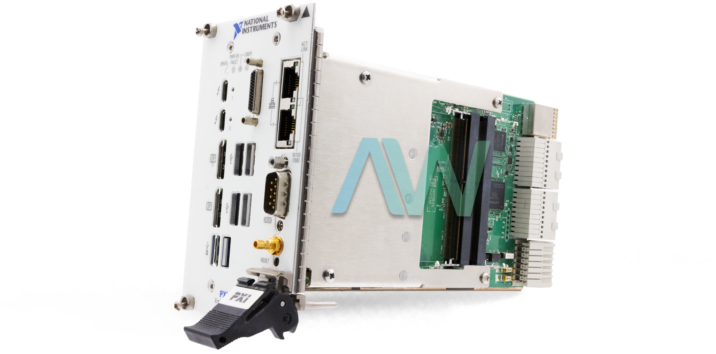 The front panel of the National Instruments PXIe-8861 contains a Display Port v1.2. The highest performance of this PXI Embedded Controller makes it an ideal solution for PXI-based control, measurement, and test systems. The integrated, differential system 100 MHz reference clock provided in this Controller offers seamless synchronization of multiple modules. Moreover, three differential star trigger busses are also provided for the distribution of precise trigger and clock signals. Thus, the demanding synchronization and timing requirements of logging and instrumentation systems are curtailed by the integrated features of the NI PXIe-8861.