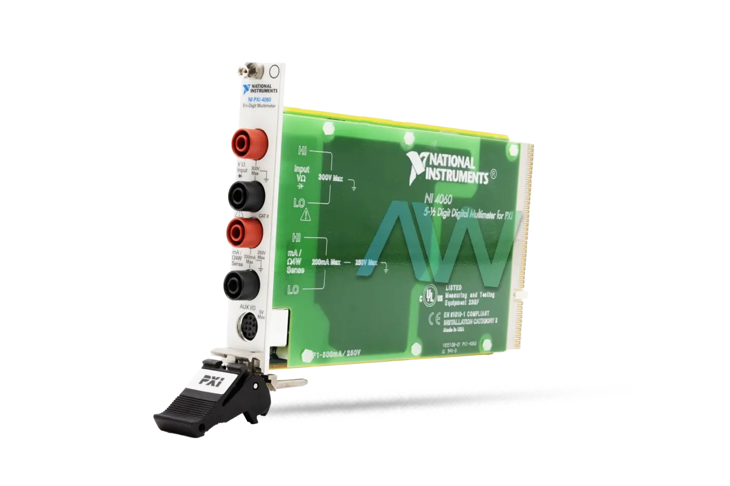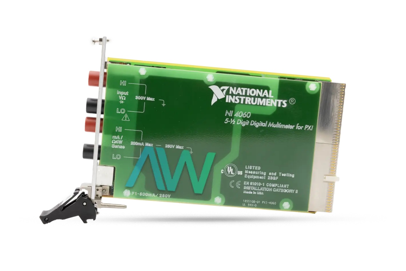 The PXI-4060 (Part number: 777554-01) from National Instruments performs precise estimations of 5½ digits of DC voltage and current, AC rms voltage and current, and resistance (ohms). The NI PXI-4060 multimeter is intended for use in automated production testing, portable field testing and electronic desktop testing. The NI PXI-4060 contains comes with several test probes with security banana plugs. These probes meet global security necessities, including UL 3111 and IEC 1010-1, for the full scope of uses upheld by the PXI-4060. Before utilizing any tests or extras not provided by National Instruments, it is recommended for the user to check that they meet appropriate security necessities for the signal levels that are expected.