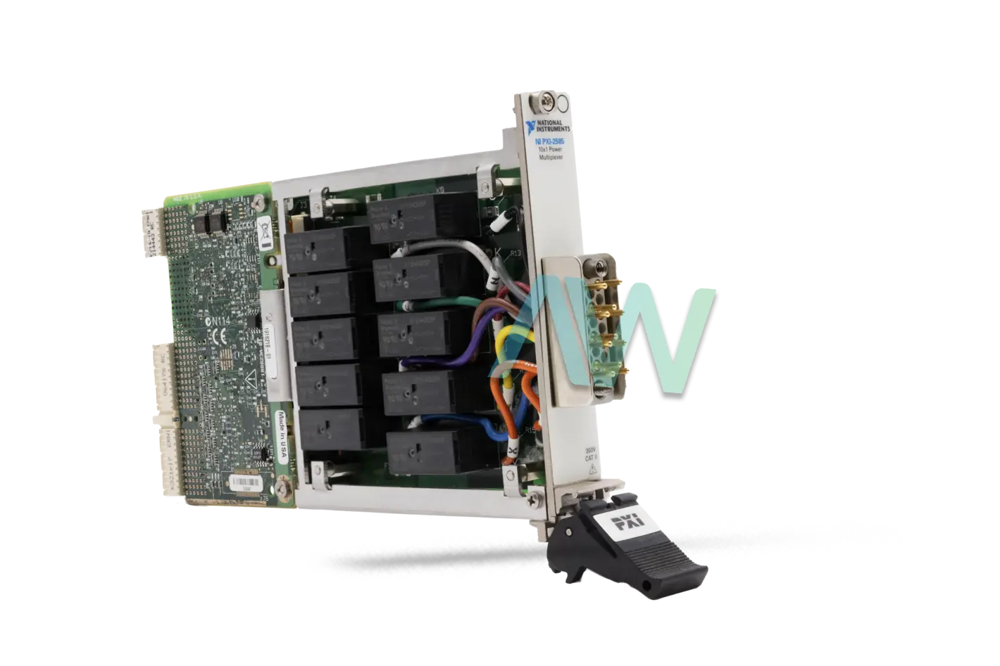 The National Instruments PXI-2585 (Part Number: 778572-85) is a 12 A, 1-Wire, 10-Channel Multiplexer Switch Module. This high-power module is an ideal solution for various control applications and automotive, battery, and power supply testing. The NI PXI-2585 can be configured as a 10x1 multiplexer offering both high isolation voltage and low contact resistance. With this module, the user can acquire 300 V channel-to-channel and 300 V (Measurement Category II) channel-to-ground maximum switching voltage. In AC systems, this Multiplexer Switch Module offers 3 kVA (up to 60 Hz) maximum switching power per channel.