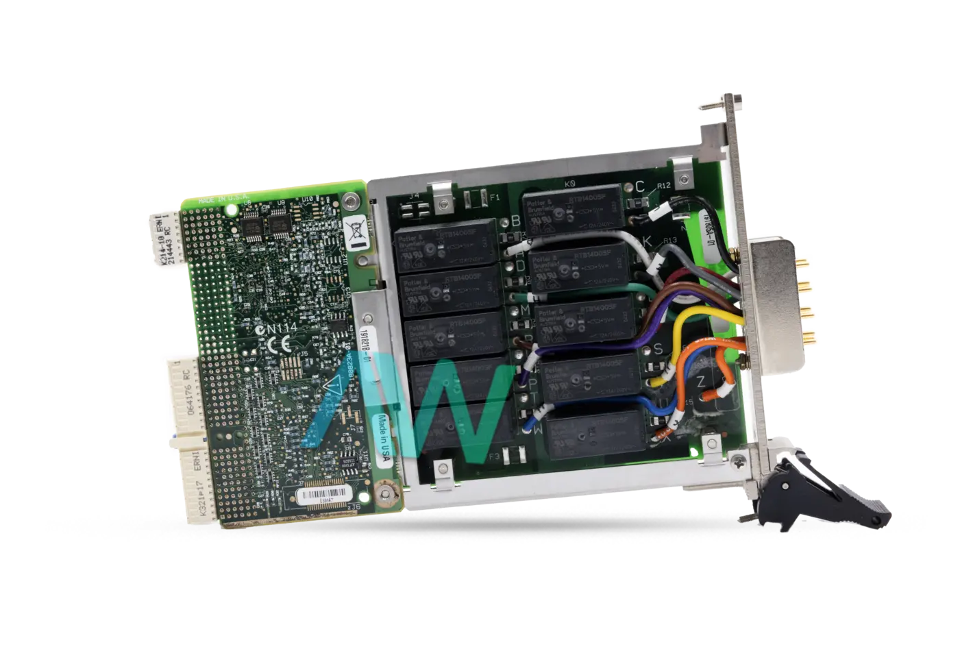 The relays used in the NI PXI-2585 are electromechanical single-side stable relays with a silver-nickel relay contact material. These relays are designed to actuate within 15.4 milliseconds maximum. The relay’s expected life is 1 × 107 cycles (mechanical), 1 × 105 cycles electrical (@ 30 V DC, 10 A DC resistive), and 3 × 104 cycles electrical (@ 30 V DC, 12 A DC resistive). The National Instruments PXI-2585 comes equipped with a Positronic GMCT series plug I/O connector featuring 20-positions.