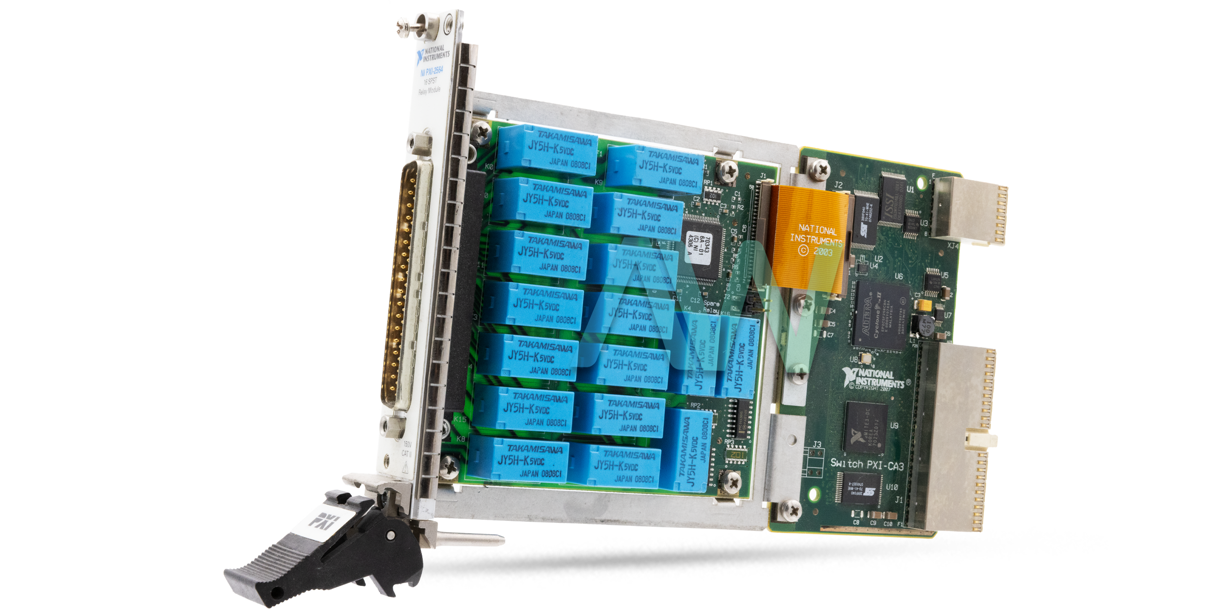 This relay module is a 3U, one slot, PXI module, which comes equipped with a 37-pin D-SUB, male I/O connector. The relays used in the construction of this module have gold-plated relay contact material and are designed to operate within 10.4 ms (maximum). In addition, these relays are known for their reliability as they come with a mechanical relay life of 2 × 107 cycles and electrical relay life of 1 × 105 cycles. The device has a switch bandwidth of 10 MHz and a scan rate of 45 cycles per second.