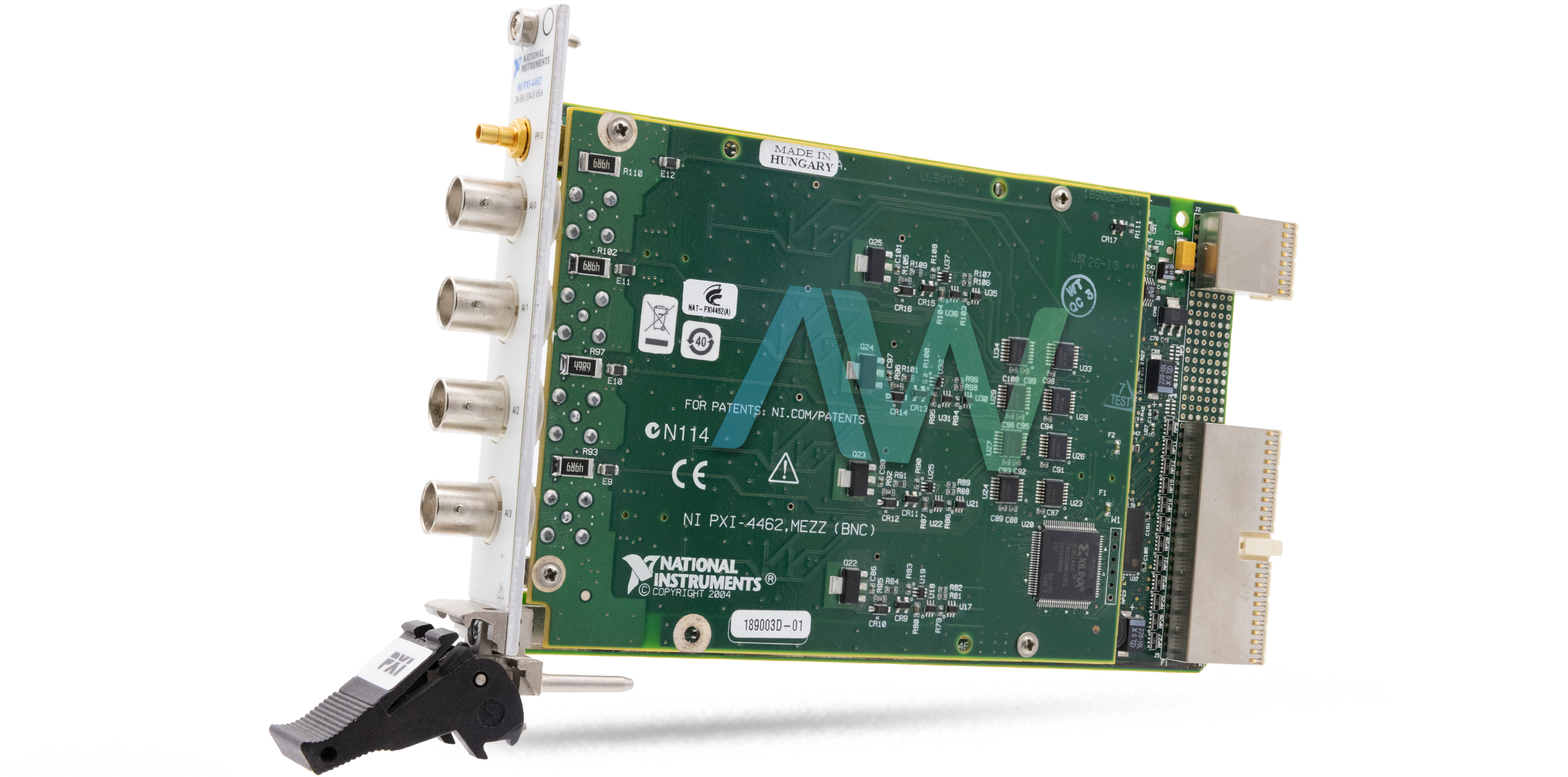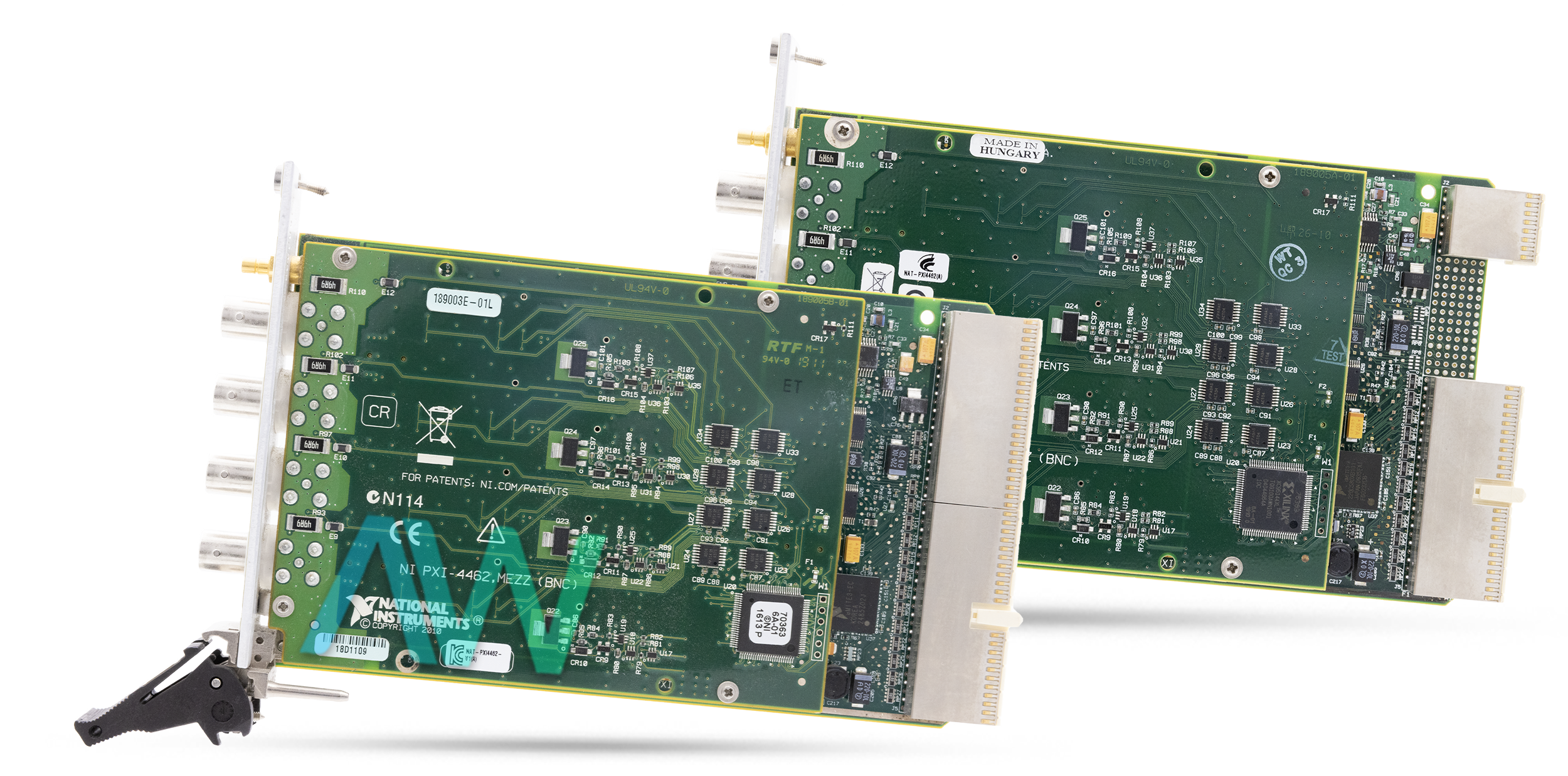 The PXI-4462 (Part Numbers: 779132-01, 779688-01, 779131-01, 188261G-01, 188261E-01), a high-performance 4-input sound and vibration module, for precise measurements in sound and vibration applications. With its delta-sigma design and 24-bit resolution ADC, it offers remarkable precision and dynamic range. It enables high-fidelity signal capture with sample rates ranging from 1 kS/s to 204.8 kS/s in increments as tiny as 181.9 μS/s. The difference between the part numbers of the sound and vibration module is that part number 779131-01 is the standard version of the device, while part number 779688-01 is hybrid slot compatible. Part number 779132-01 is equipped with a sound and vibration measurement suite.
