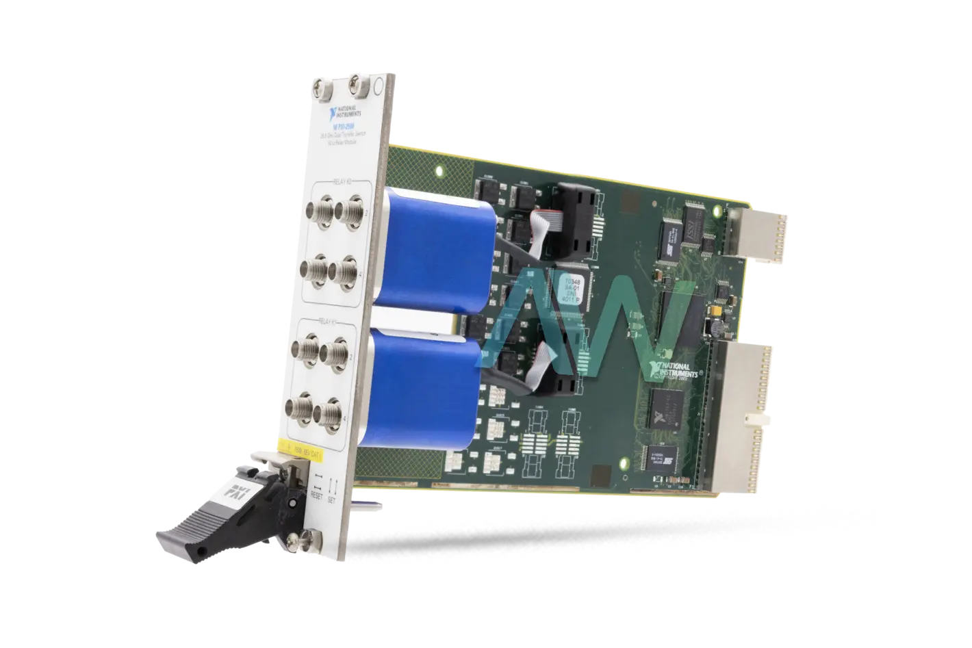 The National Instruments PXI-2598 (Part Number: 778572-98) is a 50 Ωm, 26.5 GHz, PXI Transfer Switch Module. This module is designed for routing microwave or RF signals in ATE (automated test applications). The NI PXI-2598 can be utilized for basic signal routing, as well as for the addition and removal of components in a signal path. This Transfer Switch Module is an ideal choice for passing high-order harmonics from signal upconverter to downconverter modules. The integrated, onboard relay count tracking feature can be utilized to reduce unexpected system downtime and predict relay lifetime.