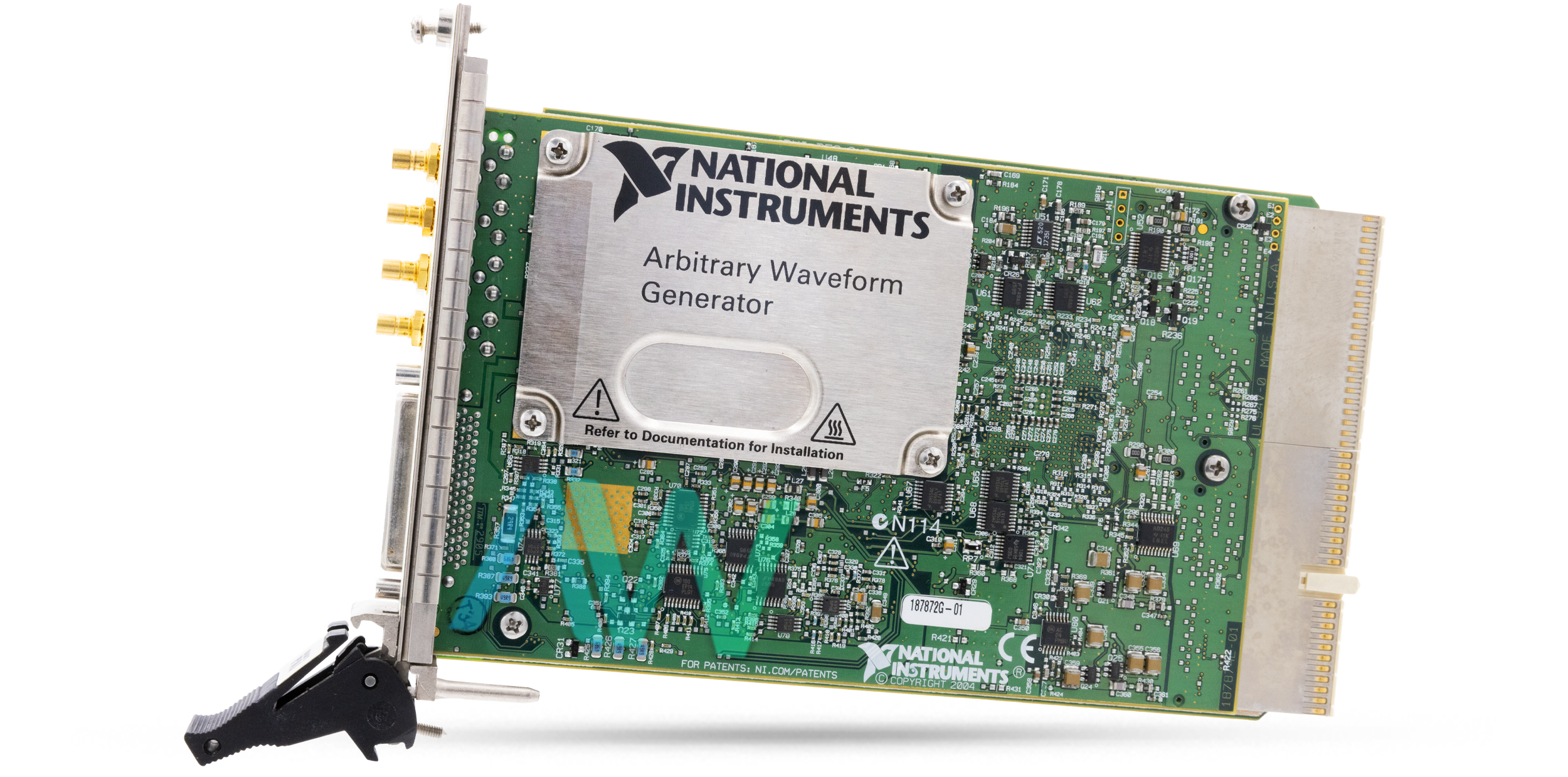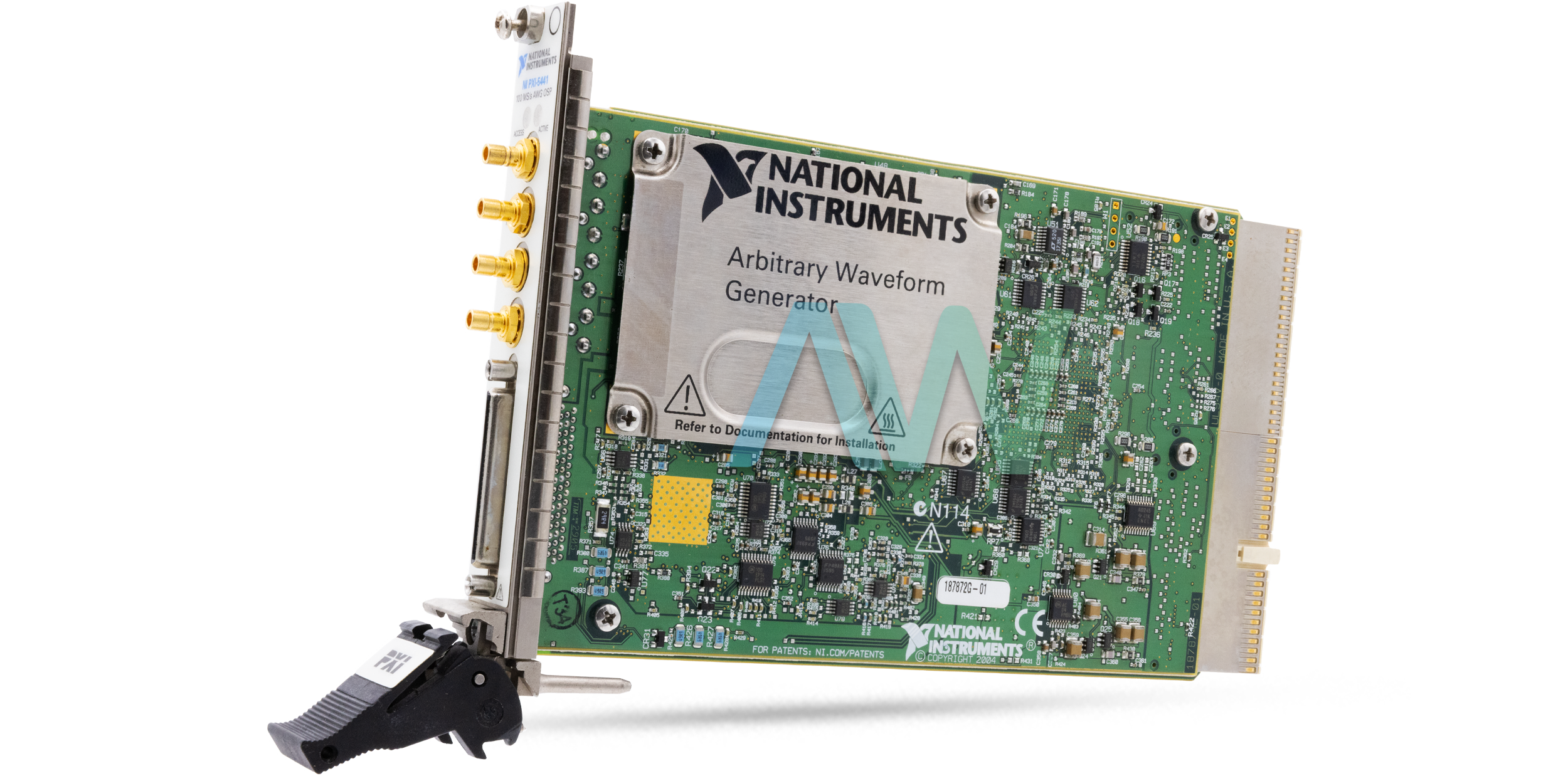 The PXI-5441 (Part numbers: 779058-02, 779058-03, 779058-04, 191789A-04, 191789A-03, 187872G-01) from National Instruments is a PXI Waveform Generator capable of transferring waveform data at high speeds, with a 100 MS/s sample clock rate. Equipped with onboard signal processing capabilities, the PXI-5441 is able to directly modify and process waveforms. By utilizing the Synchronization and Memory Core (SMC) architecture of the device, users can create mixed-signal test frameworks by synchronizing the generator with digitizers and digital waveform generator/analyzers. In addition, users can synchronize multiple generators to form a phase-coherent multi-channel generator for producing I/Q signals for various applications. The three variations of the PXI-5441 have different onboard memory sizes: specifically 32 MB (779058-02), 256 MB (779058-03), and 512 MB (779058-04).