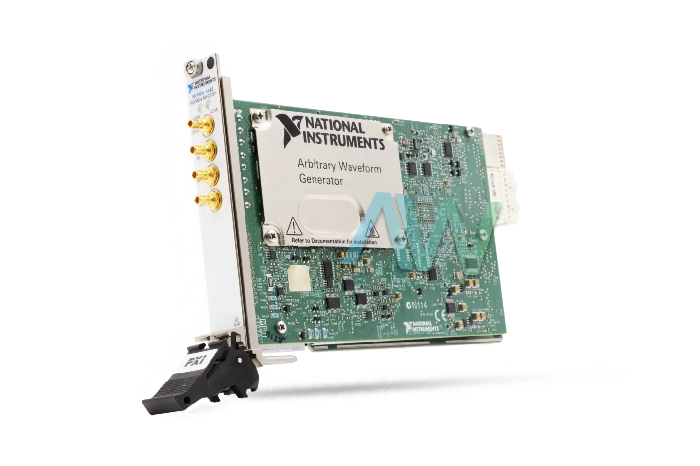 The PXIe-5442 (Part Numbers: 780109-01, 780109-02, 780109-03 and 196749A-03) is a Waveform Generator with one output channel, <43 MHz bandwidth measured at -3 dB, an output impedance of 50 Ω; 75 Ω (nominal), 16-Bit analog output resolution, and a software-selectable analog filter. The front connectors of the NI PXIe-5442 are two SMB jacks (bidirectional).