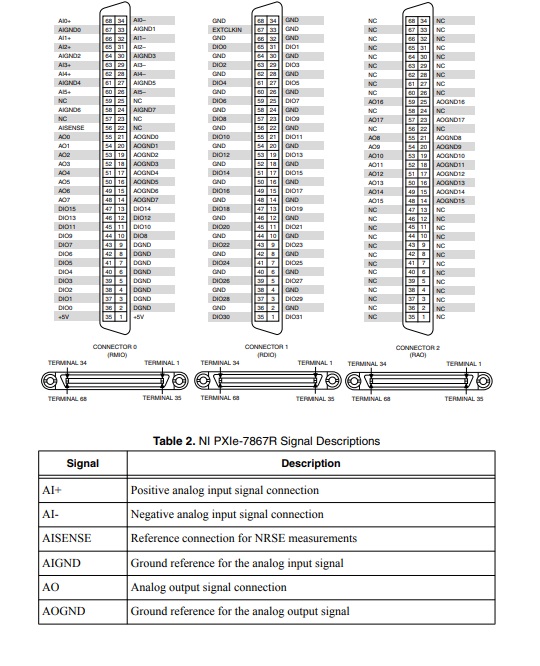 Answer: There are three 68-pin VHDCI I/O connectors on the NI PXIe-7867.