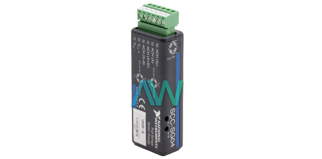 The NI SCC-SG04 module offers a variety of direct signal options, as well as a wide range of sensor connectivity options. A low-pass filter of 1.6 kHz is part of each channel. Each channel additionally includes an amplifier and a potentiometer.