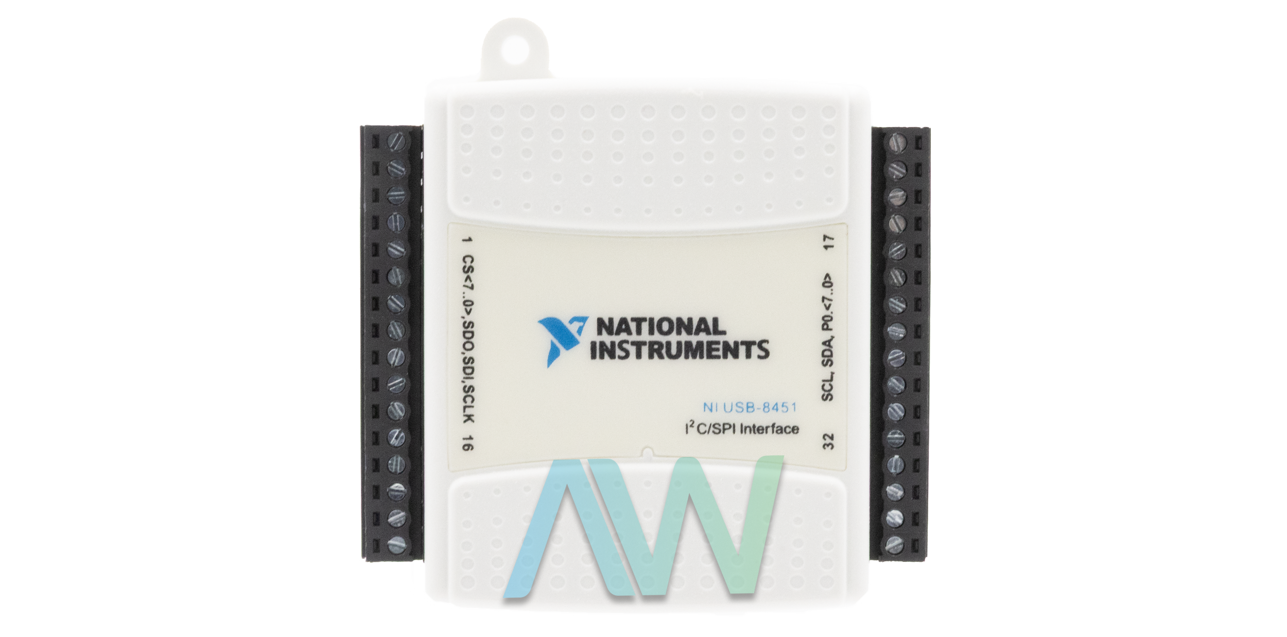 The NI USB-8451 Interface Device, in contrast to PCI interfaces, may be utilized in close proximity to I2C/SPI devices, which minimizes noise issues and the length of the l2C bus. The NI USB-8451 is a self-sufficient device, meaning it doesn't require an external power source. Rather, the full-speed USB interface typically offers 80 mA of power with a 500 mA maximum. To protect against potential damage, this Interface Device offers integrated protection against overcurrent, overvoltage, and undervoltage conditions on each SPI, DIO, and SPI CS signal. There are four SPI modes and an advanced API for custom I2C and SPi transactions.