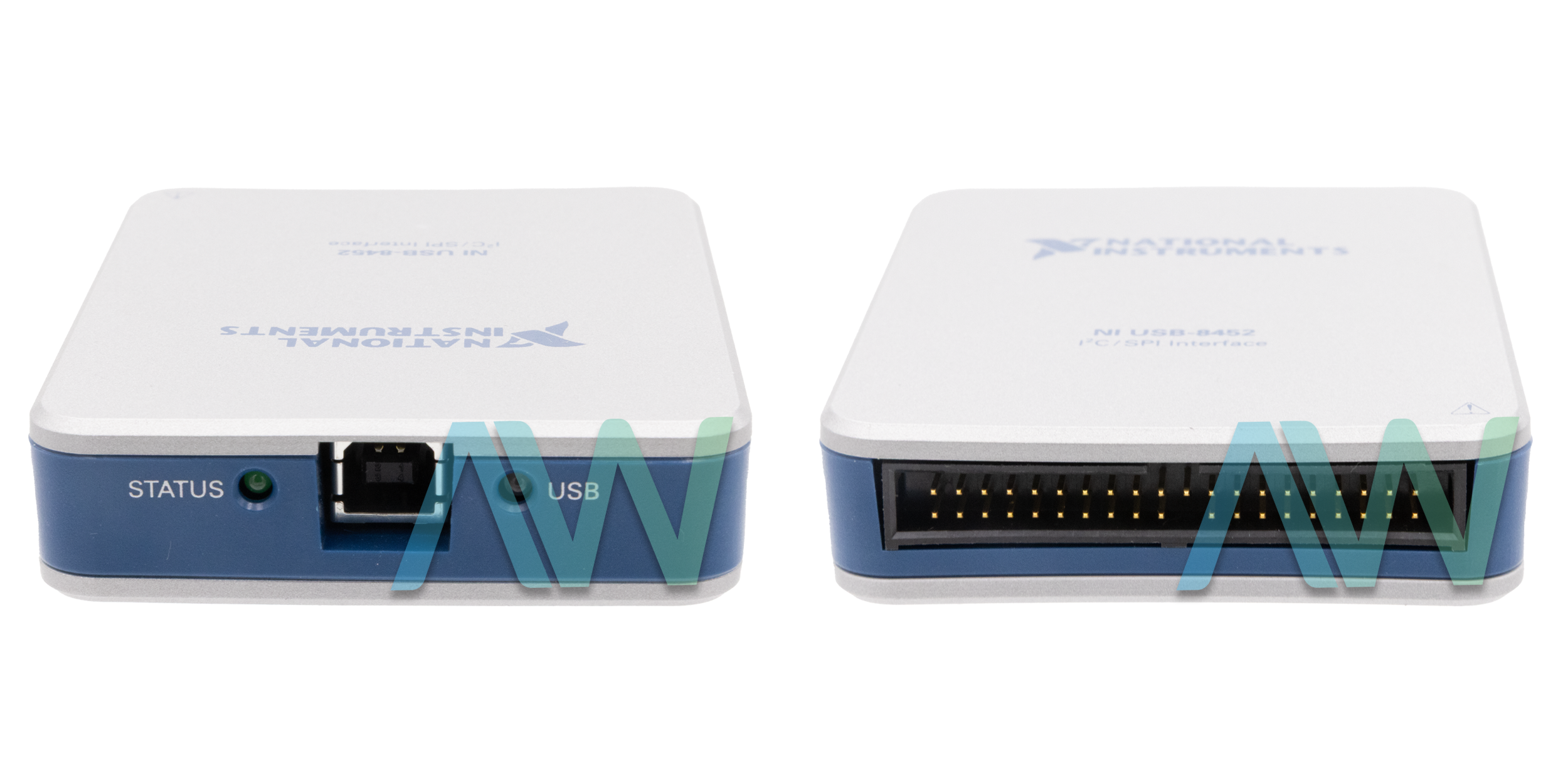 The USB-8452 (Part Numbers: 781964-01, 781964-02, 781964-03) is an Interface Device that can accomplish communication between inter-integrated circuit (I2C) devices and serial peripheral interface (SPI) devices. National Instruments (NI) designs the NI USB-8452 I²C/SPI Interface Device. The USB-8452 device is available with multiple part numbers: Part numbers 781964-01 and 781964-02 are both board only OEM versions of the USB-8452, but part number 781964-01 comes with a 2M USB cable while the other does not. Part number 781964-03 comes with a 2M US cable and a 40-pin flying lead cable. The USB-8452 I²C/SPI Interface Device is a bus-powered portable device that can be used for on-site instruments and electronics applications.