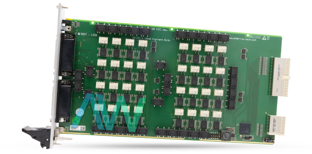 The Smart E Tech SET-1250 is a versatile Current Sink Card with 32 isolated channels. This signal conditioning card is designed for both testing and simulating equipment that adheres to the 4-20mA current loop standard. The SET-1250 boasts an increased range spanning from 0 - 24.6 mA- making it an excellent choice for automotive, HIL test systems, and aerospace applications of all sizes.