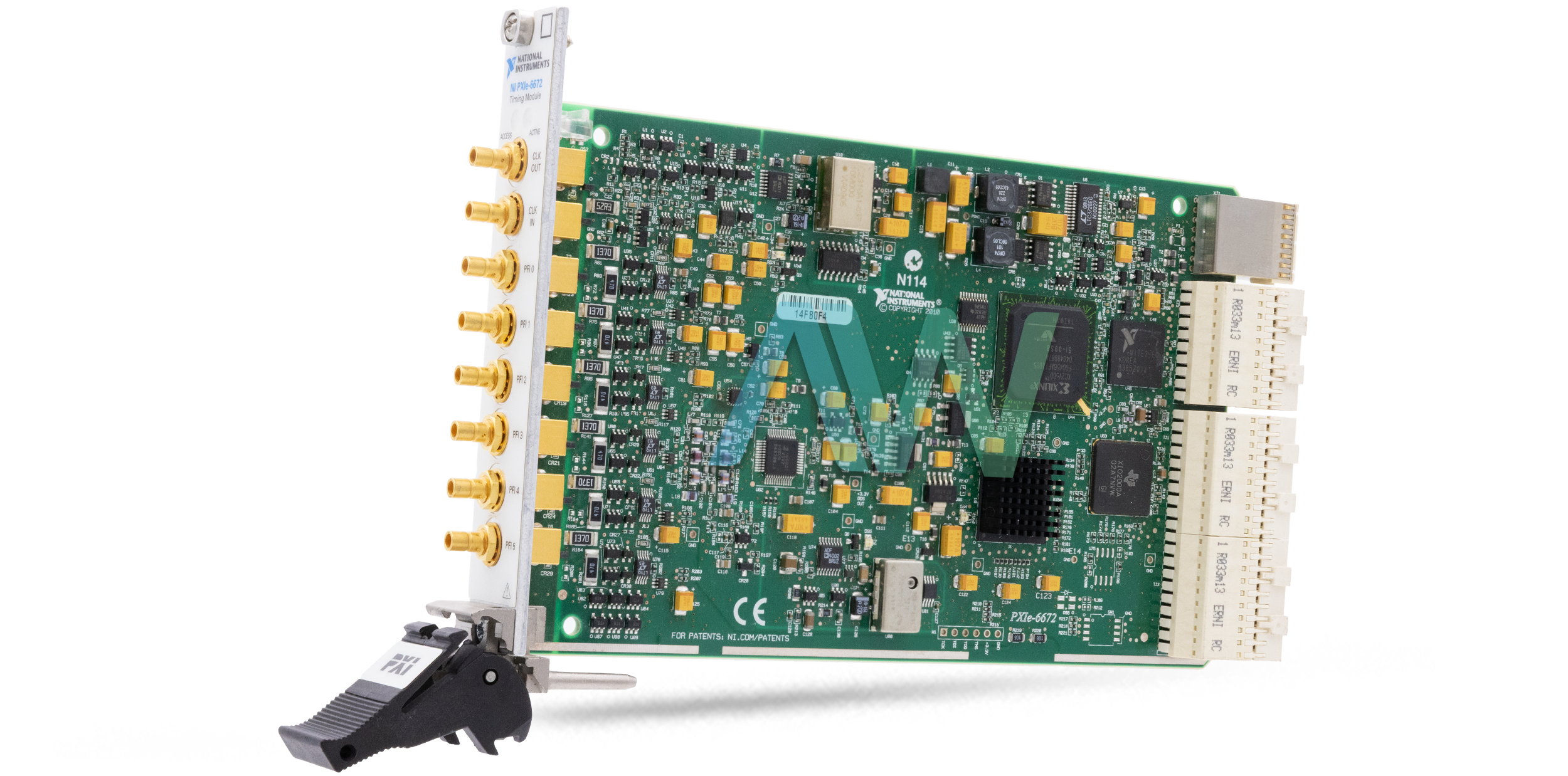 National Instruments part number 780063-01 is an identifying part number for the PXIe-6672, a PXI Synchronization Module with TCXO Clock Type, 1.6 ppm Onboard clock accuracy and SMB male, 50 Ω Front panel connectors. The NI 780063-01 can generate two types of clock signals. The first clock is created using the onboard DDS chip, and the second is produced with a precise 10 MHz oscillator. The frequency tuning word specifies the desired frequency.