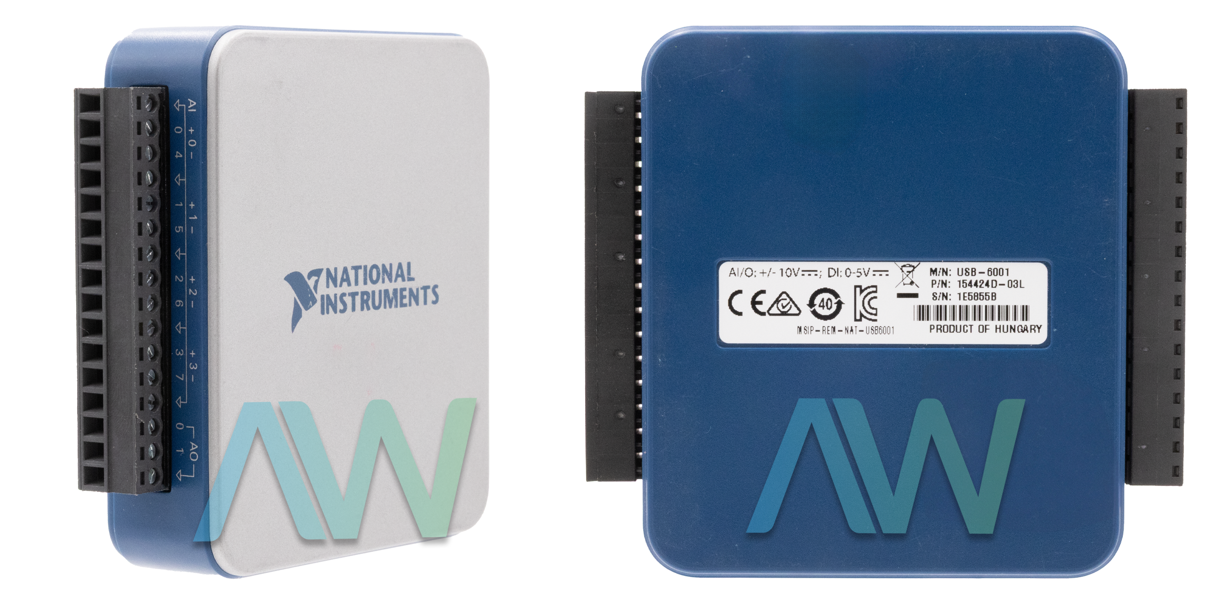 The USB-6001 (Part Numbers: 782604-01 and 782605-01) is a Multifunction I/O Device from National Instruments that is designed for a wide range of applications including laboratory experiments and industrial systems. The NI USB-6001 comes equipped with two screw-terminal front connections, offering easy connectivity for sensors and/or signals at the input or output channels. Specially designed for portable measurement applications, the USB-6001 I/O Device is bus-powered with a bus speed of 12 Mb/s and is compatible with the USB bus interface. The difference between the two part numbers of the device is that part number 782604-01 is the standard version of the device, while part number 782604-01 is the board only version of the device without an enclosure.