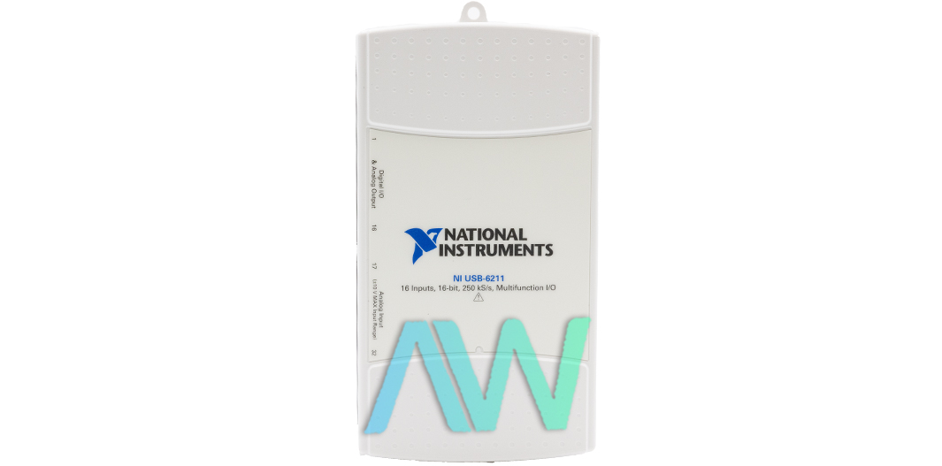 The National Instruments USB-6211 (part numbers: 779676-01, 780104-01, and 196203-03) is a portable Multifunction I/O Device from the M Series. Boasting a wide range of connectivity options, the device features 16 single-ended analog input channels that are configurable as 8 differential channels. In addition, the NI USB-6211 is equipped with 2 analog output, 4 digital input, and 4 digital output channels. The maximum sampling rate of the channels is 250 kS/s, offering a high-resolution performance for a variety of test and measurement applications.