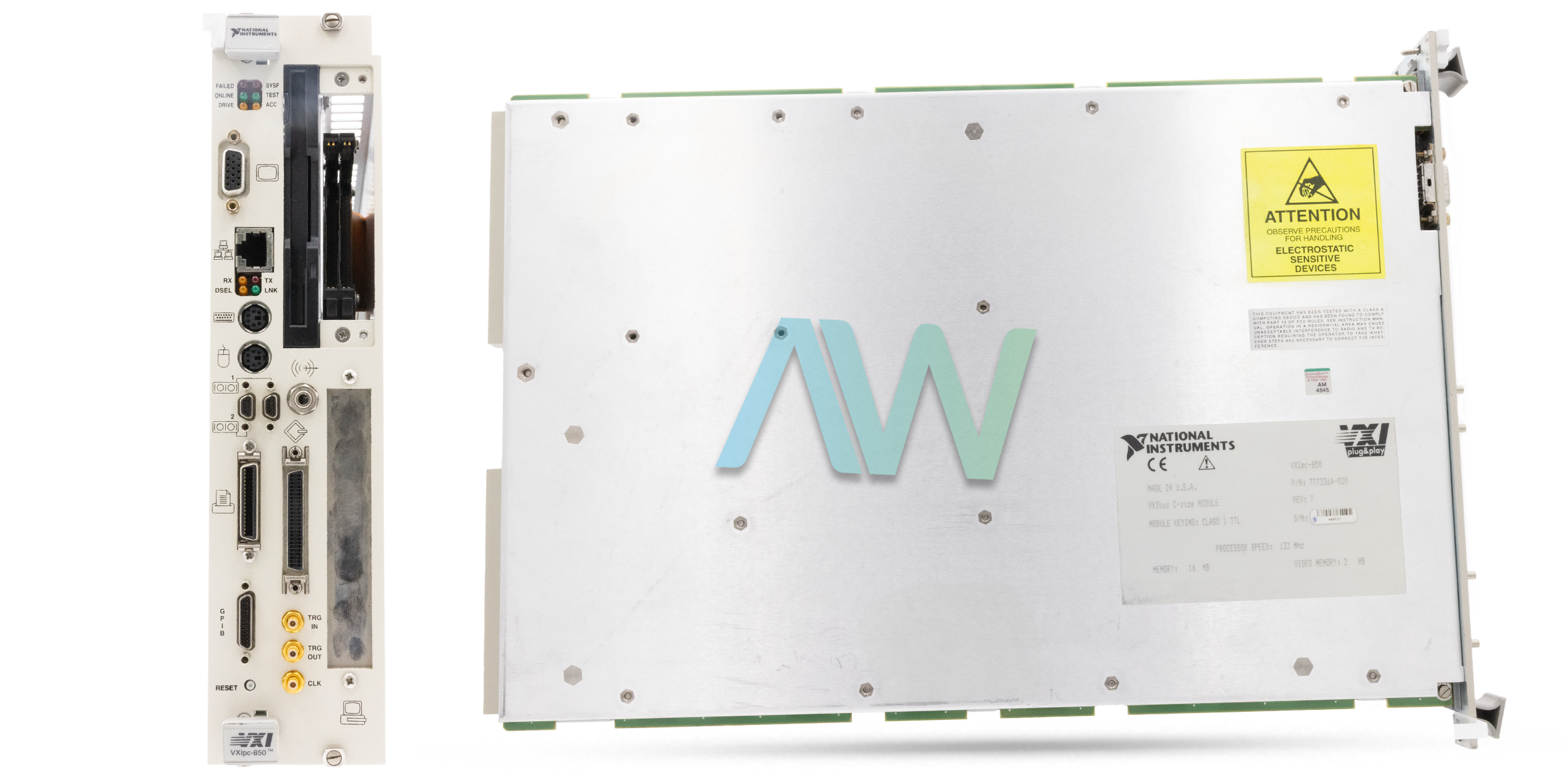 The National Instruments VXIpc-850 is a 2-slot, C-size modular Embedded Computer for VXIbus systems. This model features a PCI local bus controlled VXIbus interface– an arrangement that provides high performance and reliability. The NI VXIpc-850 is known for its unique modular construction. This device consists of numerous logic blocks, such as a CPU Card, System I/O, ISA Expansion Slot, PCI Expansion Slot, etc. The MITE based PCI-VXIbus interface circuitry incorporated in this device can handle data transfers between the processor and the VXIbus via the PCI bus.