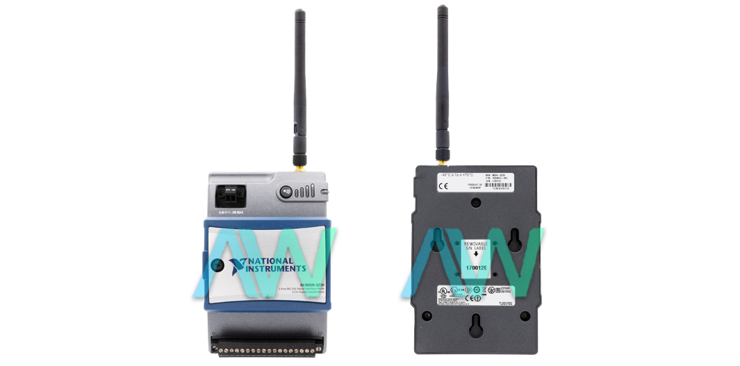 The National Instruments WSN-3230 (Part Numbers: 781637-02, 781637-12, and 152945C-04L) is a Serial Interface Node for Wireless Sensor Networks. This Serial Interface Node offers an RS232 port. The NI WSN-3230 can be used with serial instruments, sensors, and control boards. This Serial Interface Node comes with the output of a device-powered sensor channel, which can provide up to 50 mA of current at 12 V. The sensor output channel can be utilized to deliver the required power to external devices or sensors.
