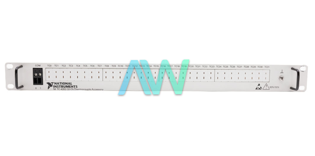 The TC-4353 (Part Number: 782403-01) from National Instruments is a front-mounting PXI Module Terminal Block that is specifically designed to be used with the PXIe-4353 PXI Temperature Input Module. The NI PXIe-4353 is a highly accurate thermocouple input module that supports up to 32 thermocouple inputs, making it an ideal choice for a wide range of temperature measurement applications. It also features 8 cold-junction compensation (CJC) channels that provide improved accuracy for CJC, which is an essential component of thermocouple temperature measurement.